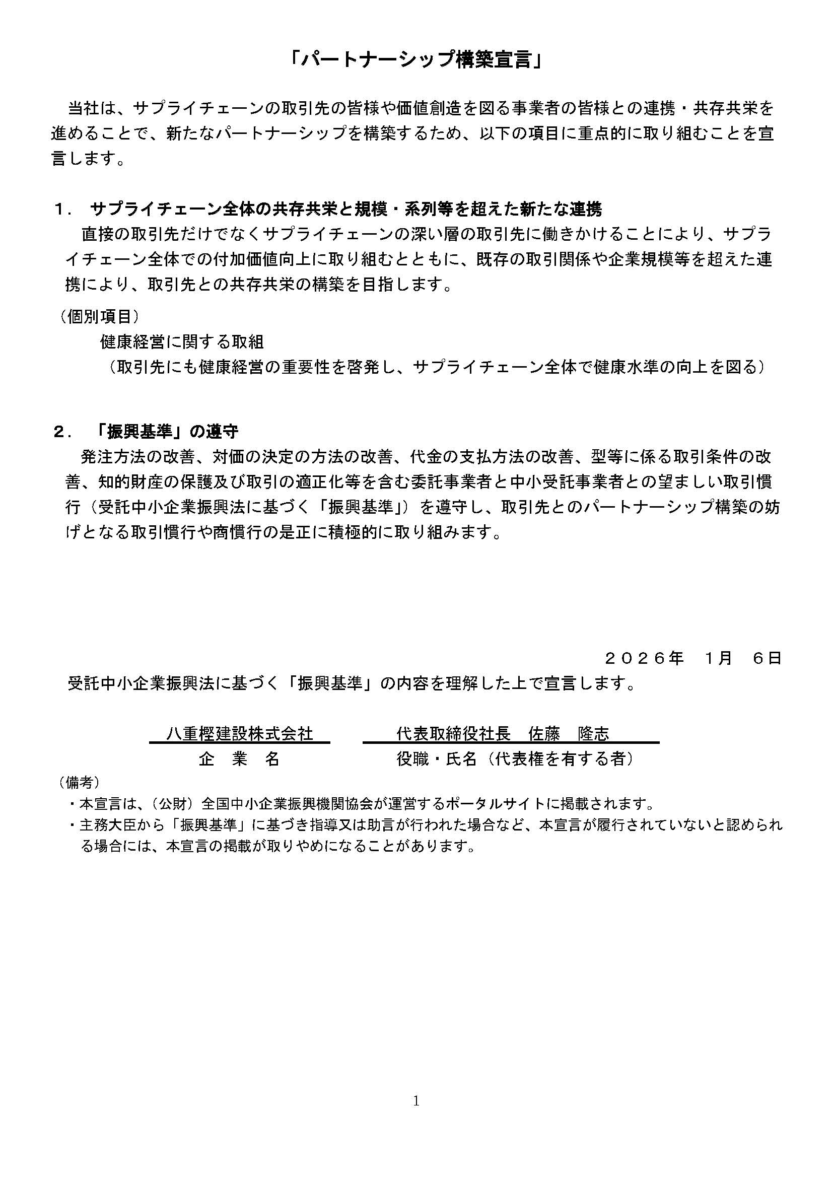 振興基準の改正に対応するため、パートナーシップ構築宣言を更新しました。